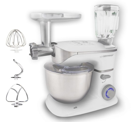 Wielofunkcyjny robot planetarny Esperanza COOCKING MASTER dysponuje trwałym i mocnym silnikiem, dzięki czemu poradzi sobie nawet z największymi wyzwaniami kuchennymi. Płynna regulacja prędkości i funkcja sterowania impulsowego pozwalają na dostosowanie szybkości pracy do konkretnej potrawy. Z jego pomocą z łatwością przygotujesz różne przekąski, ciasta, potrawy i desery.
